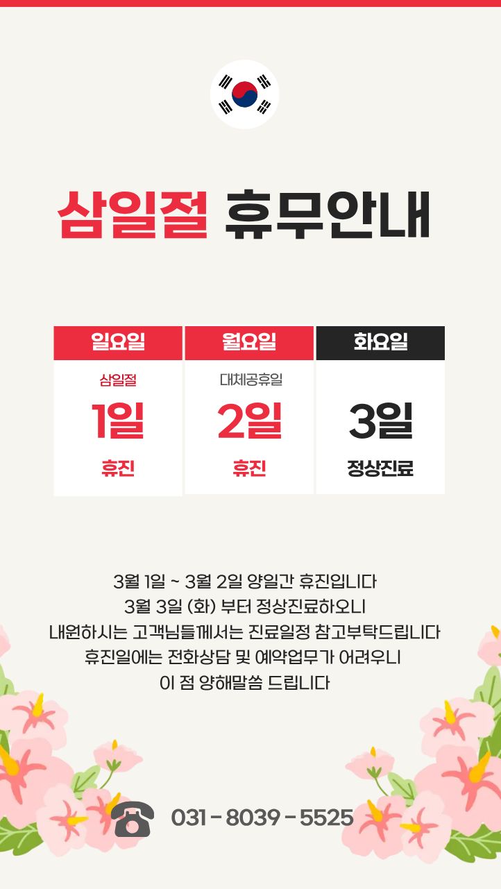 병원소개 진료안내 전문클리닉 원내알림 병원소개 인사말 의료진 의료장비소개 둘러보기 진료안내 오시는길 진료안내 가상진료체험 상담예약 진료비안내 의무기록신청 전문클리닉 유방클리닉 갑상선클리닉 원내알림 공지사항 유외과활동 031.8039.5525 Dr.Hwang’s Breast Thyroid Clinic 원내알림 공지사항 공지사항 유외과활동 공지사항 2026.02.23 2026년 삼일절 휴진안내 목록 진료시간 진료예약 오시는 길 Top