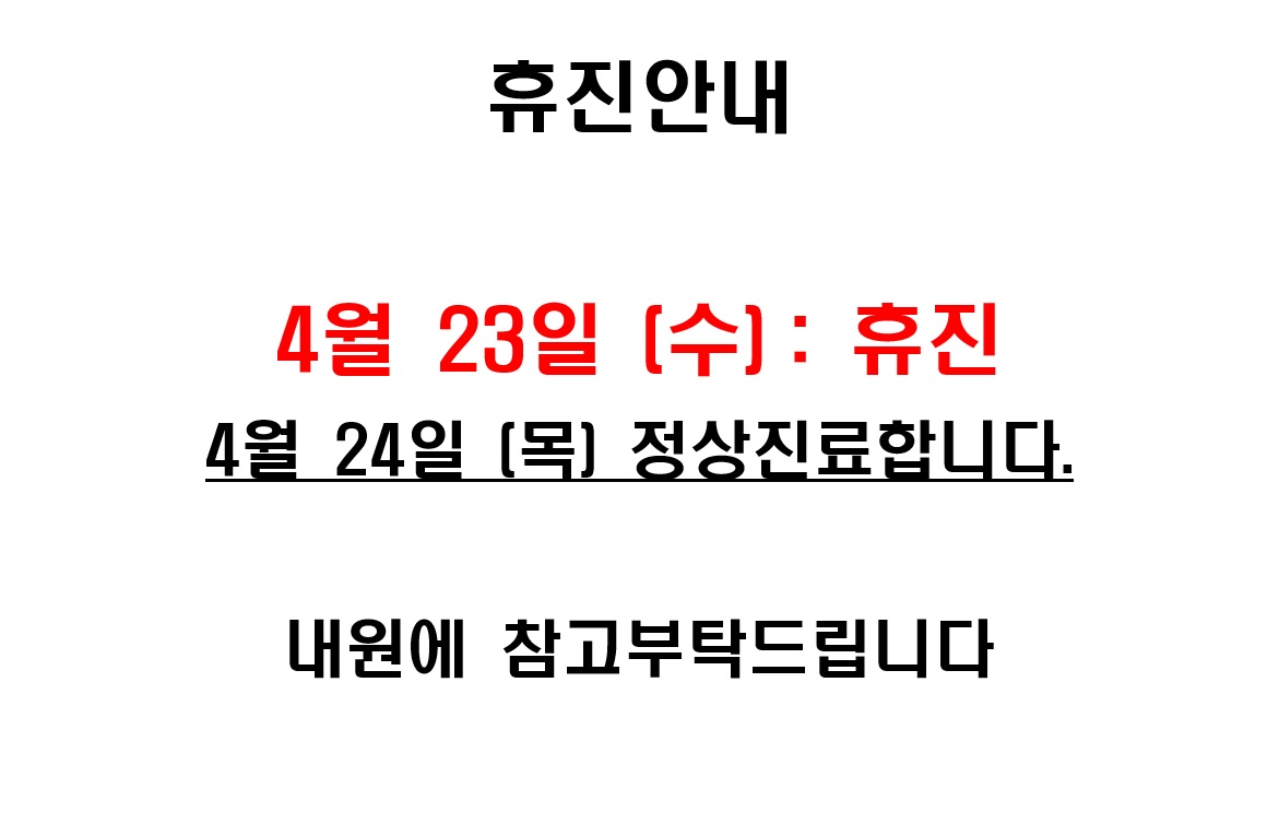 병원소개 진료안내 전문클리닉 원내알림 병원소개 인사말 의료진 의료장비소개 둘러보기 진료안내 오시는길 진료안내 가상진료체험 상담예약 진료비안내 의무기록신청 전문클리닉 유방클리닉 갑상선클리닉 원내알림 공지사항 유외과활동 031.8039.5525 Dr.Hwang’s Breast Thyroid Clinic 원내알림 공지사항 공지사항 유외과활동 공지사항 2025.03.28 4월 휴진안내 목록 진료시간 진료예약 오시는 길 Top